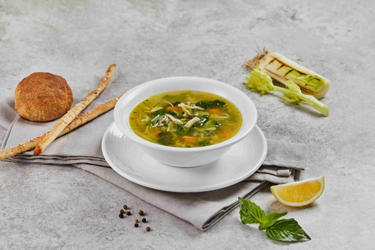 toyuq, orzo, ispanaq, kök, pirasa, kərövüz, limon